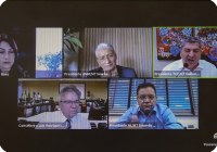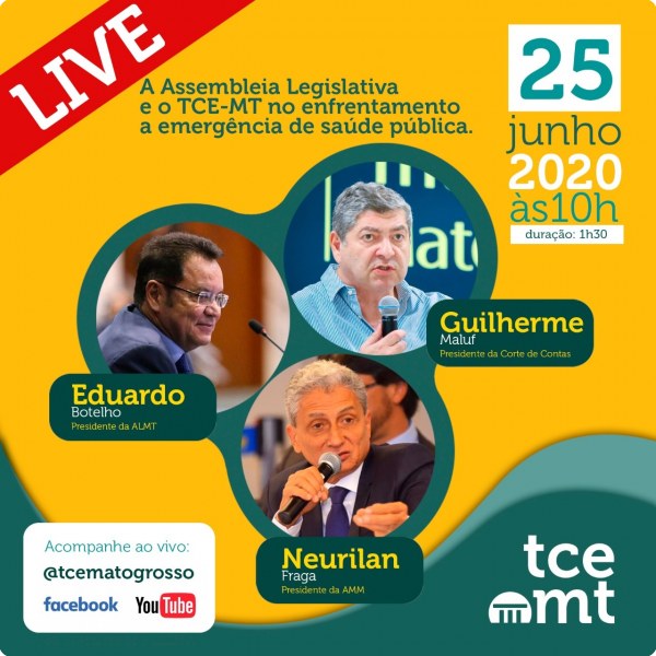 Os presidentes da Corte de Contas, conselheiro Guilherme Antonio Maluf, da Casa de Leis, Eduardo Botelho, e da Associação Mato Grossense dos Municípios (AMM), Neurilan Fraga, participaram da live promovida pela Escola Superior de Contas.